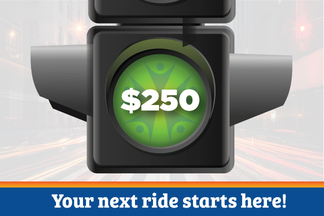 If you’ve been waiting for the green light to collect $250, you’ve come to the right place. For a limited time, we’re giving you $250 when you finance or refinance an auto loan with us.